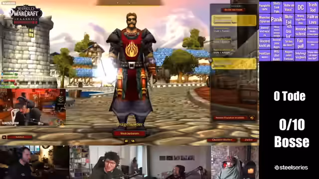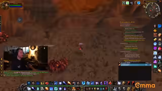 00:13:55Der Streamer startet mit seiner Gruppe den BRD-Run für die benötigte Quest zur Molten-Core-Teilnahme. Es kommt schnell zu organisatorischen Schwierigkeiten, da die Gruppe zunächst einen Hexenmeister für das Teleportieren benötigt, was nicht der Fall ist. Nach einem Wechsel der Gruppenzusammensetzung und einer kurzen Suche nach Lösungen wird der Run fortgesetzt. Der Streamer nutzt die Zeit, um Ausrüstungsfragen zu klären und Loot-Gewinne aus vorherigen Events zu erwähnen. Währenddessen wird er von Chat-Nachrichten über mögliche Pläne nach dem Raid mit Makorah unterbrochen.