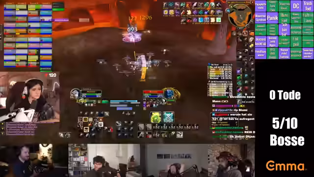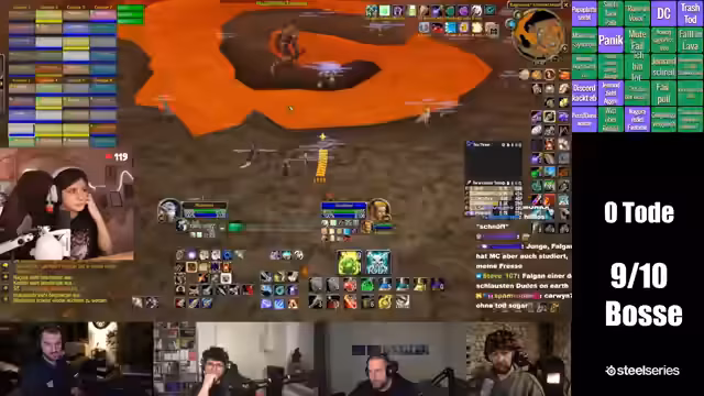 06:45:47Das Team nähert sich dem finalen Boss, Ragnaros. Die Streamerin gibt präzise Anweisungen für die Startpositionen und die Rollenverteilung. Die Hauptaufgabe der Tanks ist es, den Boss zu tanken, während DPS die Adds bekämpfen müssen. Heiler müssen auf mehrere Gruppen aufgeteilt werden. Es wird betont, wie wichtig Ruhe und Konzentration sind, da Panik in der Lava tödlich sein kann. Der Kampf beginnt und es wird darauf hingewiesen, dass Lava zu vermeiden ist, auch wenn das Fallen in sie überlebar ist, solange man ruhig bleibt.
