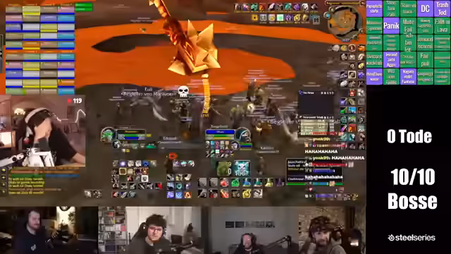 06:13:43Ein geplanter Streich, der den Raidverlauf beeinflussen könnte, wird diskutiert. Der Streamer denkt darüber nach, mit seinem Charakter während des finalen Bosskampfes gegen Ragnaros in den Lavastrom zu springen, um eine Todesmeldung auszulösen. Dies soll zwar als lustiger Prank dienen, wird aber als riskant eingestuft, da es bei der gut vorbereiteten Gruppe Panik auslösen und zum totalen Wipe führen könnte.