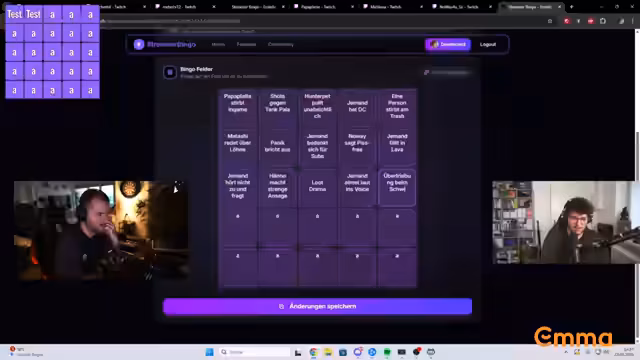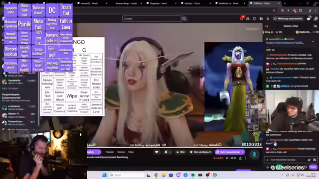 01:22:12Für den Unterhalt des Streams während des Raids wird ein Bingospiel vorbereitet. Teilnehmer wie Juli, Brücki und TK sind mit dabei. Die Community wird aufgerufen, Ideen für mögliche Bingokategorien einzubringen. Diese reichen von In-Game-Vorfällen wie 'Jemand stirbt am Trash' bis zu Chat-Aktionen wie 'Mitaschi redet über Löhne'. Der Streamer ist zuversichtlich, dass der Raid, trotz vieler Streamer, problemlos verlaufen wird.