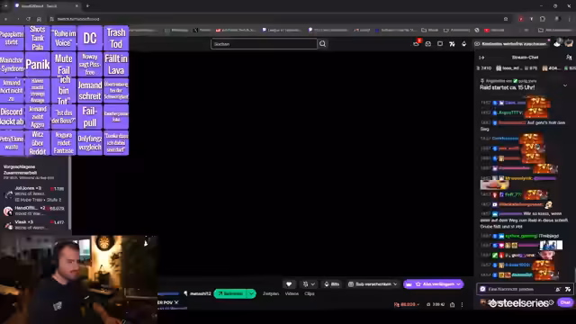 01:58:45Die technische Infrastruktur wird final für den Stream konfiguriert. Der Streamer richtet sein OBS-Layout ein, um mehrere Elemente gleichzeitig anzuzeigen, einschließlich der Bingo-Karte und der Facecams der anderen Teilnehmer. Die Ansage für den Beginn des Raids wird bekannt gegeben und eine reibungslose Übertragung aller Streams via TeamSpeak und OBS sichergestellt.