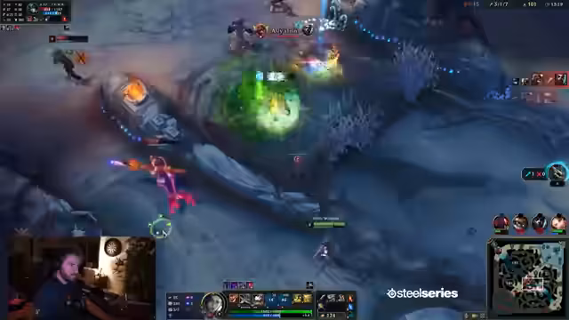 02:27:03Der Streamer und sein Team befinden sich in einem intensiven League of Legends Match, in dem strategische Entscheidungen über Drake-Kämpfe und Tower-Verteidigung getroffen werden müssen. Es wird diskutiert, ob ein Drake vor dem nächsten großen Objective angegangen werden soll, um die Seelen-Mechanik zu nutzen, die mit der aktuellen Team-Komposition gut harmonieren würde. Trotz einiger Rückschläge und knapper Situationen, in denen Spieler nur mit wenig Lebenspunkten entkommen, gelingen dem Team wichtige Kills und Tower-Eroberungen. Die Kommunikation über Flank-Möglichkeiten und das Timing von Ultimates ist entscheidend, um Vorteile zu erzielen und das Spielgeschehen zu kontrollieren. Die Spieler zeigen sich engagiert und analysieren ständig die gegnerischen Bewegungen und die eigenen Möglichkeiten, um den Druck aufrechtzuerhalten und das Spiel zu ihren Gunsten zu wenden.