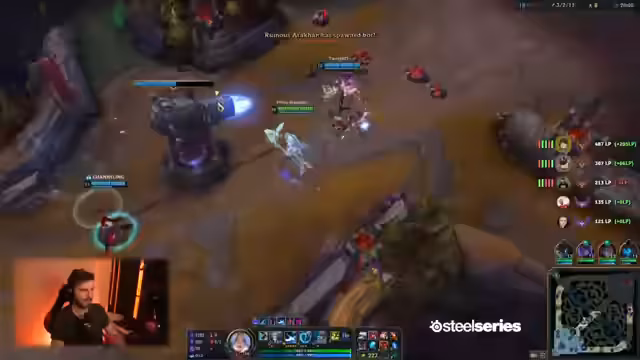 04:42:00Während des Streams wird der Fokus auf den Weg zu Challenger deutlich gemacht. Aktuell sind 328 Punkte erreicht, was 172 weitere Punkte und damit 8 Siege für den Rang bedeutet. Die Stimmung ist durchgehend grindbetont und motiviert. Die Teamstrategie beinhaltet Seitenkontrolle, wie den Sidesnap, und das Nutzen von Tarics Ult. Es wird eine deutsche Lobby mit sechs deutschen Spielern erwähnt, was die Live-Atmosphäre unterstreicht.