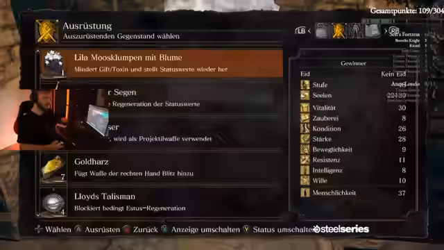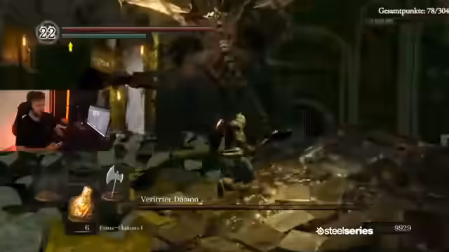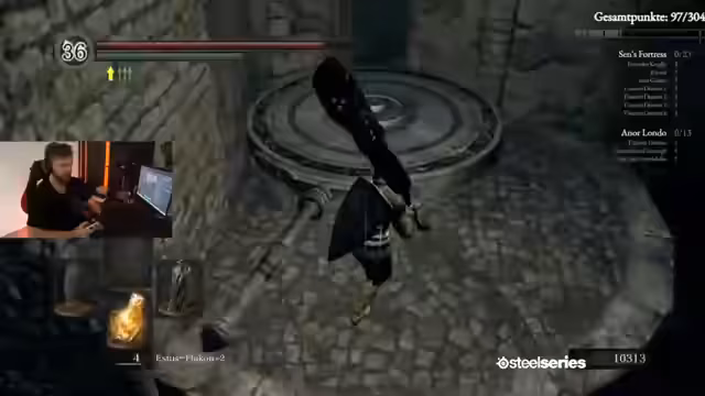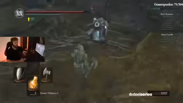 00:05:13Der Streamer berichtet über den aktuellen Stand des Runs und vergleicht sich mit anderen Teilnehmern wie Johnny, der bereits 87 Punkte erreicht hat. Konkrete Nervenkitzel wie die Castle oder die Galerie in Anorondo werden identifiziert. Beim Durchlaufen eines Bereichs wird der Verlust der Feuerhüter-Seele thematisiert, was als großer Rückschlag und potenzieller Todesgrund im weiteren Verlauf des Runs gilt.
