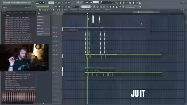 00:06:48Die Arbeit konzentriert sich nun auf die musikalische Umsetzung. Der Streamer arbeitet mit FL Studio und nutzt Samples von Splice, um ein Backing-Track aufzubauen. Er experimentiert mit Leads, Synthesizern, Percussion und einem Sub-Bass. Ein wichtiger Teil ist die feine Abstimmung der Effekte, insbesondere des Reverbs, um dem Track die nötige Tiefe und Raumfülle zu verleihen. Er sucht nach der richtigen Melodie und Rhythmusstruktur für den Song.
