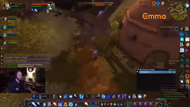 01:07:10Die Gruppe plant, sich für die Quest-Annahme zu organisieren, wobei der Streamer nach dem Log-in die Mitspieler bittet, ihm zu folgen. Es wird der Plan gefasst, nach der Dungeon-Session die Arena-Quest abzuschließen, um viel Erfahrungspunkte zu farmen. Die Koordination der Gruppe gestaltet sich dabei etwas holprig, da der Streamer Schwierigkeiten hat, alle Spieler auf demselben Stand zu halten und die korrekte Quest zu verteilen.
