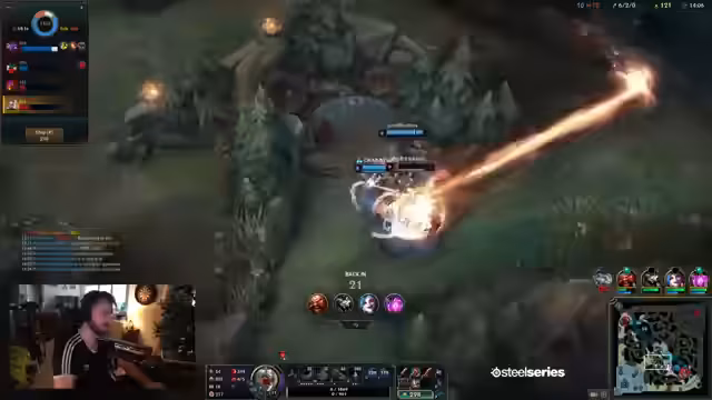 00:33:17Nach einer kleinen Pause werden die letzten Spiele als Aufwärmphase bewertet, die trotz Verlusten gezeigt haben, dass pro Spiel mindestens 12 Kills möglich sind. Der Streamer wechselt zu einem neuen Spiel gegen Heimadonga. Die Synergie der Gegner-Comp mit Syndra, die Buffs erhalten hat, wird als interessant beschrieben. Der Plan ist, der Syndra mit Sidestepping zu entkommen, während der Wunsch besteht, den Kennen zu picken. Die Bot-Lane mit Brand und Zyra wird als 'eklig für die Gegner' eingestuft.