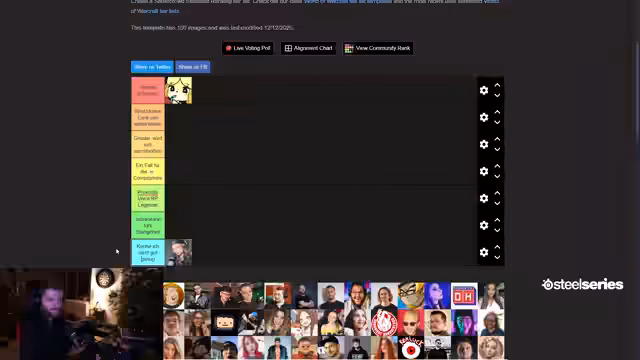 04:33:27Die Einschätzung von Coppelius beginnt, der keine Vorerfahrung in WoW hat. Es wird jedoch seine Teilnahme an "Soulkeepers" erwähnt, wo er extrem durchgeplant und vorsichtig spielte, was als perfekt für Hardcore-Projekte angesehen wird. Trotz seiner begrenzten Zeit im Discord wird ihm zugetraut, Level 60 zu erreichen, wenn auch langsam. Seine vorsichtige Spielweise wird als Bonus in WoW angesehen, da er beispielsweise Höhlen meiden würde. Daher wird er in die Kategorie "Grinder" eingeordnet, da er das Potenzial hat, hart zu grinden. Während der Diskussion kommt es zu einem Raid von HandOfBlood, der die Zuschauer begrüßt und die laufende Tierlist-Diskussion erklärt. Es wird betont, dass die Tierlist faktenbasiert und objektiv ist, und die Zuschauer werden eingeladen, ihren Input zu geben, insbesondere bei Teilnehmern, deren Gaming-History nicht vollständig bekannt ist. Die Diskussion über Coppelius wird fortgesetzt, wobei seine langsame, aber gründliche Spielweise als ideal für Hardcore-Projekte hervorgehoben wird.