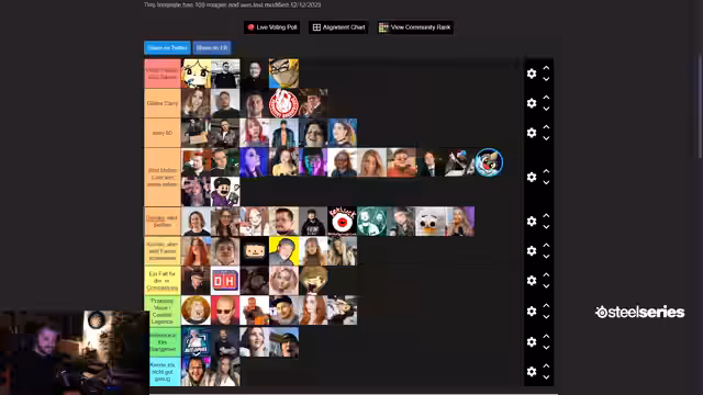 04:37:54Die Bewertung von Dalu-Kart folgt, der als sehr erfahrener WoW-Spieler gilt. Es wird diskutiert, ob seine Spielzeit auch ein hohes Skill-Level bedeutet. Es wird erwähnt, dass Dalu-Kart sich vor dem Spielen eines Spiels umfassend informiert und alles maximiert. Eine Anekdote aus einem Japan-Urlaub, bei dem Dalu-Kart aus seinem Hotelzimmer WoW geradet hat, unterstreicht seine Hingabe. Trotz der Überlegung, ihn aus Ragebait-Gründen nicht ins S-Tier zu packen, wird er aufgrund seiner offensichtlichen Fähigkeiten und seines Engagements einstimmig in die höchste Kategorie eingeordnet. Anschließend wird Divi bewertet. Obwohl ihre WoW-Erfahrung unbekannt ist, wird sie aufgrund ihrer Motivation und ihres Gamer-Stolzes als mindestens "Grinder" eingestuft. Es wird erwartet, dass sie Level 60 erreichen wird, wenn sie sich das Ziel setzt. Die Annahme ist, dass Divi, wenn sie etwas beginnt, es auch durchzieht und nicht vorzeitig aufgibt. Daher wird sie in die Kategorie "Molten Core von innen sehen" eingeordnet.