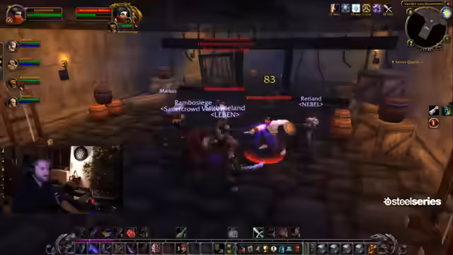 01:06:45Während des Verlies-Runs erklärt Wieland die Lore der Defias-Bruderschaft. Er berichtet, dass die Defias beim Aufbau von Sturmwind geholfen, aber nicht bezahlt wurden, woraufhin sie eine Gewerkschaft gründeten und streikten. Der Staat reagierte darauf, indem er Abenteurer anheuerte, um die Gewerkschaft niederzuschlagen. Wieland vergleicht die Defias mit der RAF und sympathisiert mit der Polizei. Der Streamer schlägt Wieland vor, als Gildenmeister innerhalb des Projekts zu kandidieren, um der "Schreckensherrschaft" von Max entgegenzuwirken. Es wird über die Möglichkeit eines "Makora" zwischen Wieland und Max gesprochen, wobei Wieland sein rotes Kopftuch als Symbol der Rebellion anziehen würde. Ein seltener Gegner, Rugal Eisenfaust, wird im Dungeon angetroffen, und es wird über den seltenen Loot in diesem Dungeon diskutiert.