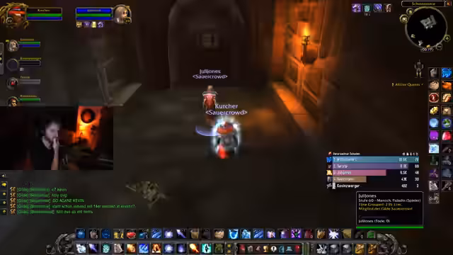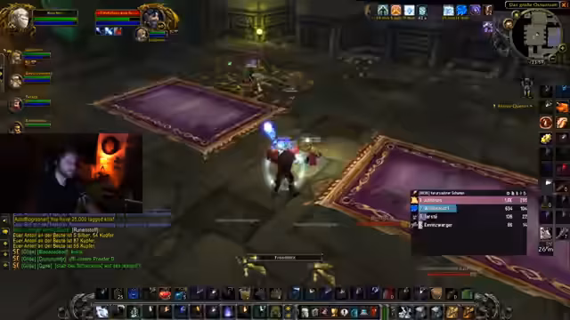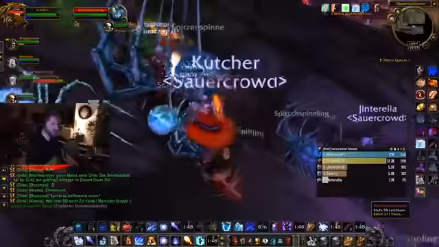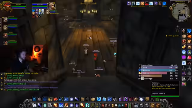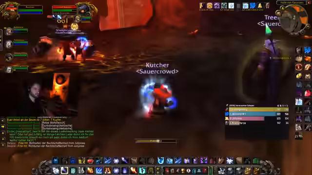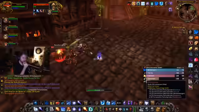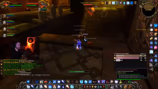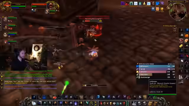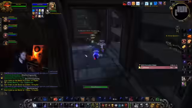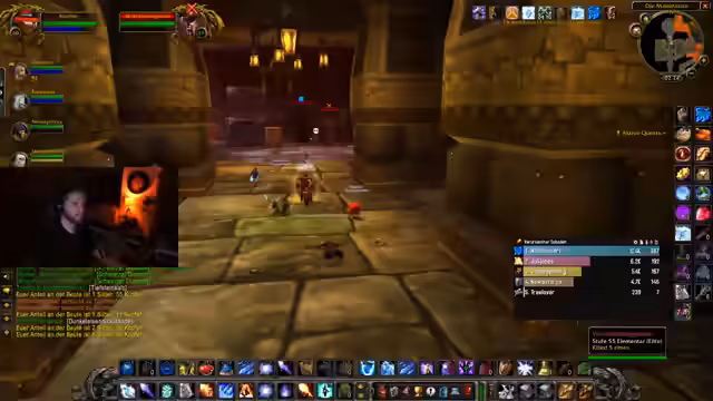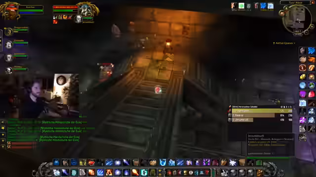 Es wurde ein World of Warcraft-Dungeon absolviert. Es wurden Taktiken besprochen, ein Kampf verlief chaotisch, aber die Gruppe hielt trotz anfänglicher Schwierigkeiten zusammen. Es wurde über die Ziele der Gilde und die Anstrengungen der Spieler gesprochen.