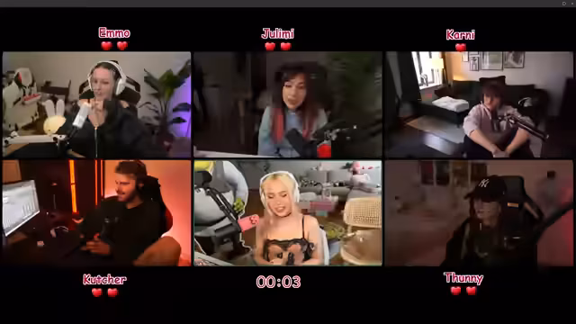 01:03:11In den finalen Runden des Quiz stehen nur noch kutcherlol, Kani und Emo mit zwei Herzen sowie Toni, Juli und Kani mit einem Leben zur Verfügung. Die Fragen werden spezieller und erfordern tiefes Wissen zu League-of-Legends-Themen. Obwohl jeder Teilnehmer sich bemüht, verlieren immer wieder Herzen, und die Spannung steigt, wer als 'Der Dümmste' das Event verlassen muss.