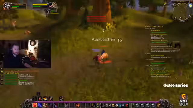 00:49:36Die Hauptaktion konzentriert sich wieder auf das Gameplay in World of Warcraft. Der Streamer hat das Gefühl, seine Waffen seien nicht optimal und plant, in Stormwind einzukaufen. Die Community hilft ihm bei der Jagd auf Materialien wie Spinnensekrete. Es kommt zu humorvollen Momenten, als ein Priester ihm das Leben rettet und er nach einem Respawn über Aggro und Heilung spricht. Der Fokus liegt auf dem gemeinsamen Erlebnis im Spiel, dem Entspannen und dem sammeln der notwendigen Ressourcen für die Quests.