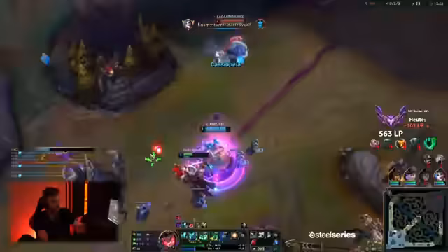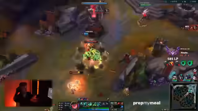 01:43:49Der Stream konzentriert sich auf ein intensives League of Legends-Spiel. Der Kommentator analysiert die Spielzüge der Teams kritisch, insbesondere die Positionierung und die Entscheidungsfähigkeit der Mitspieler. Er diskutiert strategische Fehlentscheidungen, wie die unklare Vorgehensweise in der Bot-Lane und das Risiko eines Map-Splits, wenn der gegnerische Jungler in der Nähe ist. Es gibt wiederholte Hinweise auf das Missachten von Warnsignalen durch das eigene Team, was zu tödlichen Konsequenzen führt. Der Ton ist geprägt von Frustration über vermeidbare Fehler und Anerkennung für gelungene, aber seltene Momente.