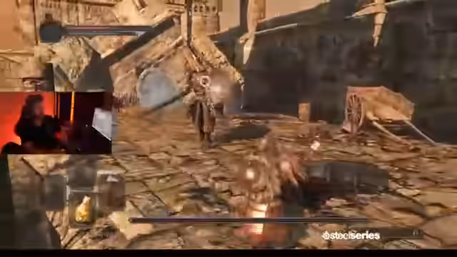 00:42:00Nachdem er sich eine gute Rüstung und bessere Waffenausrüstung besorgt hat, steht der Streamer seinem ersten richtigen Bosskampf gegenüber. Es handelt sich um einen Mini-Boss, der besonders heimtückisch agiert und schnelle Attacken hat. Die Taktik erfordert Geduld und die Nutzung des Umfelds, was zu einem spannenden und knappen Kampf führt, den er am Ende erfolgreich abschließt, auch wenn es nur knapp und mit den letzten Ressourcen gelingt.