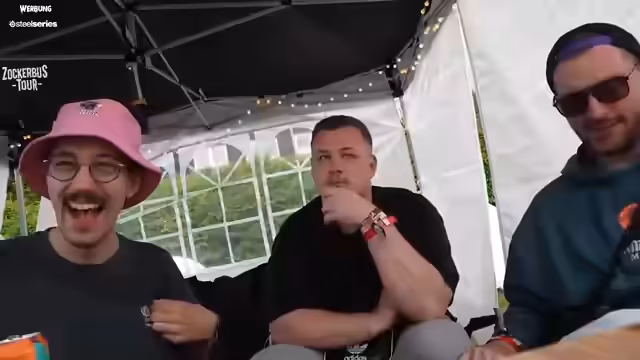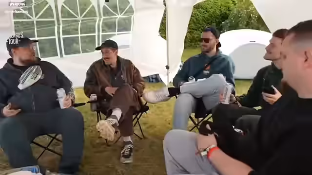 10:09:07Zu Beginn des Streams tauschen die Streamer ihre persönlichen Musikvorlieben aus, wobei Bands wie Madball, Hatebreed und Beginner als Favoriten genannt werden. Dabei wird die spezielle Atmosphäre bei vergangenen Konzerten erwähnt und auf das Alter der Teilnehmer eingegangen. Die Spannung im Festivalgelände ist bereits spürbar, und die Bereitschaft für diverse Aktivitäten ist hoch. Die Teilnehmer wirken begeistert von der Gesamtsituation und dem bevorstehenden Programm, das eine Mischung aus Musik, Spiel und spontanen Abenteuern verspricht.