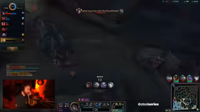 05:23:19Nach dem verlorenen Spiel wird die Performance analysiert. Der Streamer identifiziert Probleme in der Jungle-Map-Positionierung und verpasste Kills. Es wird diskutiert, dass Cassiopeia nicht permanent getötet werden kann und der Lee Sin sich gut gecovert hat. Die VSD-Steuerung wird erwähnt, ist jedoch noch nicht verfügbar. Ein Little Drake spawnt, was Chancen bietet.