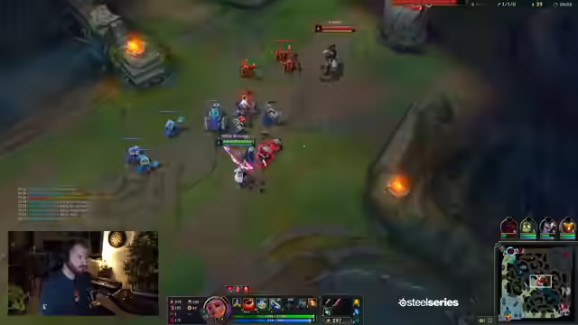 04:37:16Es wird die aktuelle Spielsituation analysiert, wobei insbesondere das Verhalten einzelner Mitspieler kritisiert wird. So wird beispielsweise bemängelt, wie jemand "so drei sein" kann, was auf ein ungeschicktes oder unüberlegtes Vorgehen hindeutet. Es wird die Enttäuschung darüber geäußert, dass ein eigentlich vielversprechendes Spiel durch ungünstige Entscheidungen und mangelnde Teamkoordination negativ beeinflusst wird. Ein Spieler namens Linus wird erwähnt, dessen Strategie, den Trundle nicht zu "facen", scheinbar fehlschlägt, da dieser ungehindert Türme einnimmt. Trotzdem gibt es auch positive Momente, wie eine "cleane Kombo", die jedoch nicht ausreicht, um das Spielgeschehen entscheidend zu wenden. Die Frustration überwiegt, insbesondere angesichts der Tatsache, dass man sich extra für dieses Spiel eingeloggt hatte.