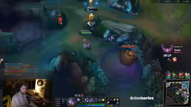 06:47:06Der Stream beginnt mit der Überlegung, den Champion Master Yi zu spielen, was jedoch schnell verworfen wird. Stattdessen entscheidet man sich für Dawnbringer Vayne, obwohl der Streamer unsicher über die Synergie mit dem ausgewählten Support Rell ist. Das Spiel startet mit einem Ziel, 12 CS in den ersten beiden Wellen zu farmen, da dies als Voraussetzung für einen Remake gilt. Die anfängliche Bot-Lane gestaltet sich jedoch schwierig, da der Support wenig Engagement zeigt und der Gegner, unterstützt von einer aggressiven Yumi, starken Druck aufbaut. Ein früher Todesfall macht die angestrebte Farm-Zielnummer gefährlich.