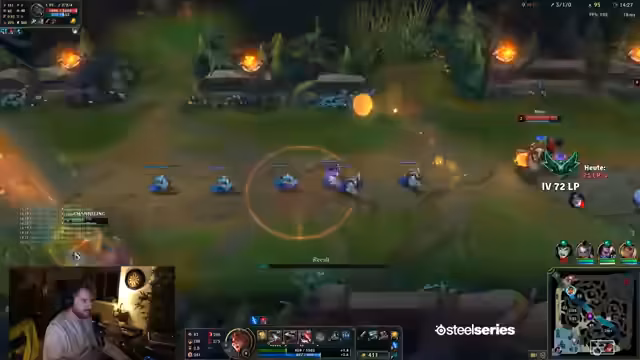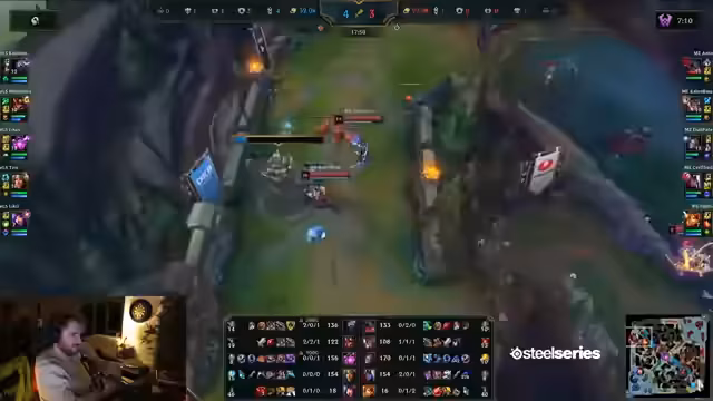 07:10:38Das Spiel nimmt eine Wendung, als der Streamer zu aggressiv vorgeht und einen tödlichen Fehler macht, indem er sich in eine unausgewogene Situation stürzt. Obwohl er im Teamfight Schaden verursacht, stirbt er, ohne das Team optimal zu unterstützen. Dies führt zu einer Rückgewinnung des gegnerischen Teams. Der Streamer analysiert seine Fehler, speziell die Platzierung seiner Fähigkeiten und das Timing seines Flashes. Er erkennt, dass eine geduldigere Spielweise und bessere Positionierung im Teamfight entscheidend gewesen wären, um den Sieg nicht zu gefährden.