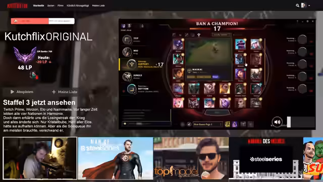 00:09:22Nach den Plänen gehen die Streamer ins Game und spielen eine Partie. Es gibt einige in-game-Kommunikationen und Diskussionen über Champion-Picks und Spielstrategien. Einer von ihnen spielt Xayah und lobt den Spielstil seines Partners. Die Stimmung ist gelassen und von gegenseitigem Häneln geprägt. Parallel dazu gibt es eine rege Chat-Interaktion, wobei der Streamer seinen sehr diversen Chat lobt und scherzt, dass es wahrscheinlich viele verschiedene Vornamen und vielleicht sogar 20 Alexe im Chat gebe. Die Zuschauerzahlen werden ebenfalls thematisiert.