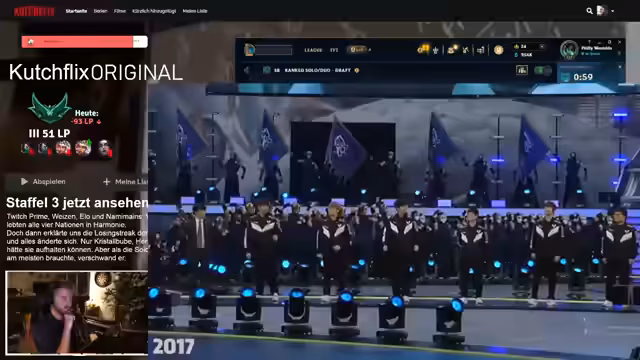 03:38:59Nach Abschluss des Spiels schaltet der Streamer zu den Opening Ceremonies der League of Legends World Championships. Er blickt auf vergangene Jahre zurück, insbesondere auf legendäre Teams wie SKT T1 und Samsung Galaxy. Er äußert seine Bewunderung für die spektakuläre Bühne und die professionelle Organisation, was eine Abwechslung zum Gameplay darstellt und seine Begeisterung für das E-Sport-Event zeigt.
