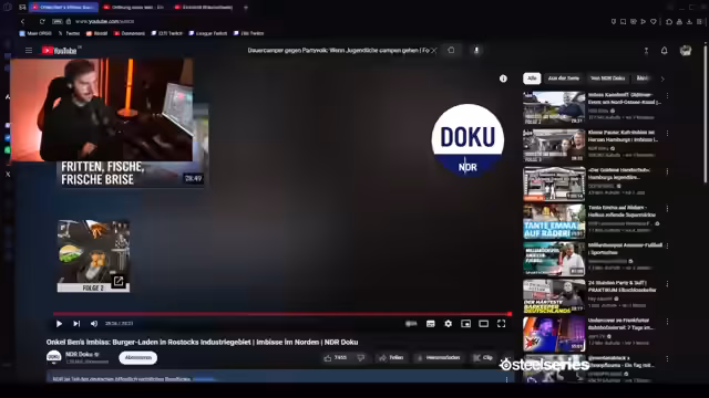 00:07:02Die Stimmung des Streams wandte sich zu einer lockeren Betrachtung von Dokumentationen, insbesondere von NDR-Dokus, die der Streamer gerne ansieht. Anschließend teilte er ausführliche persönliche Anekdoten von einem legendären Tag in Braunschweig, der ein Fußballspiel, eine wilde Fahrt und ein Bowling-Date umfasste. Abschließend widmete er sich dem Leben eines älteren Wirts einer Bahnhofskneipe, die als Mikrokosmos der Gesellschaft und ein Ort der menschlichen Begegnungen dargestellt wird.