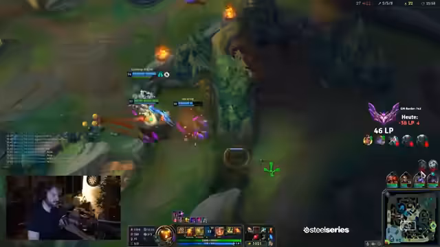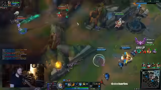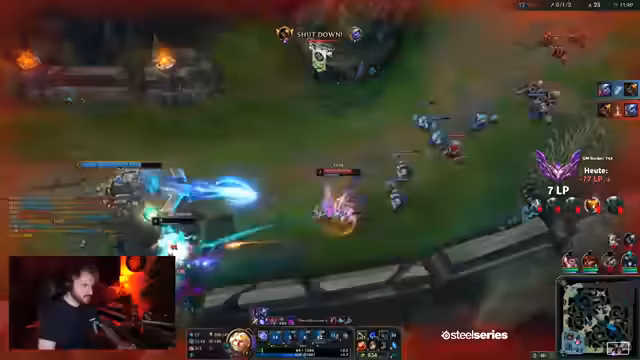 00:05:12Die frühe Spielphase wird durch die Analyse der gegnerischen Teamzusammensetzung und die daraus resultierenden Herausforderungen geprägt. Es wird festgestellt, dass Samira und Fiora auf ungewöhnlichen Positionen spielen, was zu Anpassungen in der eigenen Strategie führt. Die Angst vor einem frühen Gank des gegnerischen Junglers Zac wird thematisiert, und die wiederholte Begegnung mit einem Warwick-Spieler sorgt für Verwunderung. Die Diskussion dreht sich um das Contesten von Krabben und Red Buff, wobei der Fokus darauf liegt, wie man die Wayfield unterstützen kann, ohne selbst ins Hintertreffen zu geraten. Es wird entschieden, die Lane zu pushen, in der Hoffnung, dass die Gegner nicht rechtzeitig reagieren können. Insgesamt zeigt sich, dass die frühe Spielphase von Unsicherheit und dem Versuch geprägt ist, die gegnerische Strategie zu durchschauen und die eigenen Stärken optimal einzusetzen. Es wird überlegt, wie man Kills erzielen und gleichzeitig die eigenen Schwächen kompensieren kann.