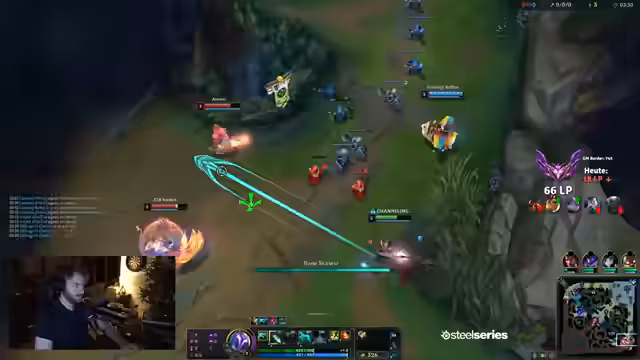01:08:31Die Analyse des Spielgeschehens konzentriert sich auf den Atakan und den Jax, die als Schlüsselspieler identifiziert werden. Es wird die Frage aufgeworfen, ob man den Atakan contesten oder lieber auf andere Ziele fokussieren soll. Die Stärke des Jax wird trotz seiner schlechten Statistik (1-8) hervorgehoben, und es wird spekuliert, wie er zu so viel Gold gekommen ist. Die Bedeutung von Level 16 für Schussler wird betont. Der Streamer kommentiert sein eigenes Aufplatzen und die Stärke der gegnerischen Sonor. Die Syndra wird als größtes Problem identifiziert, und es wird überlegt, wie man sie ausschalten kann. Es wird die Bedeutung hervorgehoben, dass der Sinch realisiert, dass die Syndra das wichtigste Ziel ist. Die Gesprächsteilnehmer diskutieren verschiedene Strategien, um den Jax zu kontrollieren und die gegnerischen Angriffe abzuwehren. Die Schwierigkeiten, das Spiel zu carrien, werden thematisiert, und es wird die Notwendigkeit betont, als Team zusammenzuarbeiten, um erfolgreich zu sein. Die Bedeutung von Vision Control und präzisem Timing wird erneut hervorgehoben, um erfolgreiche Angriffe zu initiieren und sich vor Hinterhalten zu schützen.