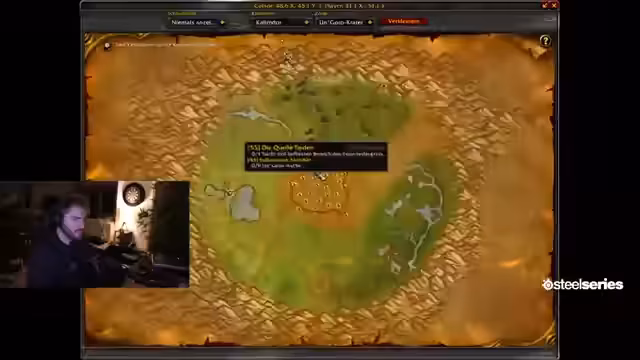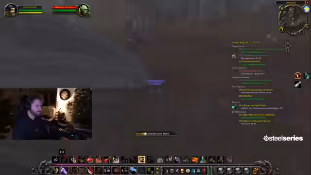 00:00:37Moin, hallo Südox und Tim! Streamer startet den Stream und teilt mit, dass er gerade vom Weihnachtsmarkt kommt. Das Ziel für heute ist klar: Level 54 und 55 erreichen. Er erwähnt, dass er kaum Futter mehr hat und einen grünen Kristall für eine Quest braucht. Nach kurzer Vorbereitung startet er das Farmen von Quest-Items im Un'Goro-Krater, während er über Gilde und Level-Fortschritt spricht. Der Fokus liegt auf dem schnellen Leveln, um den Zeitplan für das bevorstehende Event einzuhalten.