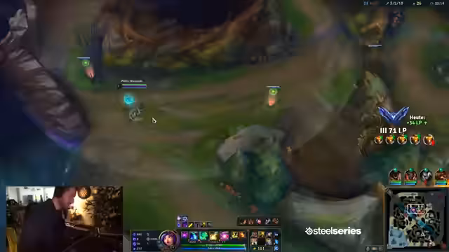 02:28:26Der Fokus wechselt zur gemeinsamen League of Legends-Partie mit Phil. Nach einem turbulenten Spiel mit einem früh aggressiven Talon, den der Streamer verdächtigt, ihn im Busch gecamped zu haben, geht es in ein zweites Runde. Hier wird der Champion Niko ausgewählt. Der Streamer beschreibt die Lane-Phase als schwierig, da sein Gegner einen 'illegalen' Doran's Blade Start wählt. Er beschreibt das Spielgeschehen voller Dynamik mit Kill-Situationen, Vision-Kämpfen und dem Gefühl, ständig im Krisenmodus zu sein, während er versucht, das Spiel für sein Team zu steuern.