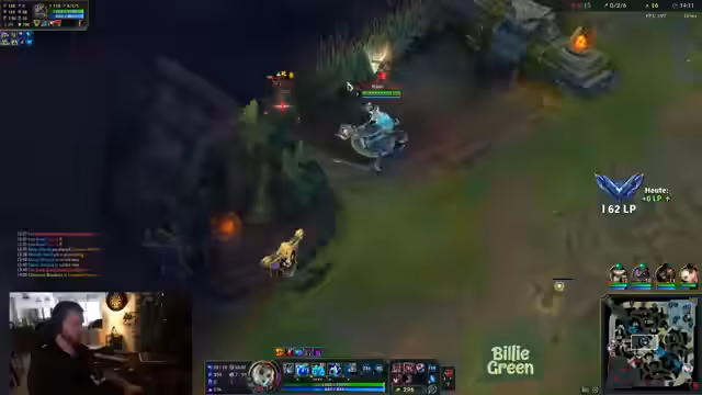 00:01:07Der Stream beginnt mit dem Ziel, den aktuellen Golden-Rang zu verlassen und in den Grandmaster-Rank aufzusteigen. Der Streamer, kutcherlol, ist hochmotiviert und plant, den Master-Rang schnell zu erreichen. Er erwähnt, dass er im Frühling gerne League of Legends spielt, sobald die Bäume blühen, und dass seine erste Runde gut verläuft. Das Spiel findet gegen einen Nasus-Jungler statt, den er als nutzlos empfindet, solange er nicht gefüttert wird.