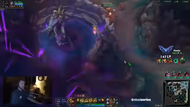 03:32:06Der Streamer berichtet über eine Rückkehr der Vayne ins Spiel und bewertet das Early Game als schwierig, sieht jedoch nun leichte Siege vor sich. Er lobt die Leistung eines Spielers und drückt Erleichterung über die aktuelle Spielsituation aus. Auch wird die Leistung der Xayah als problematisch beschrieben und verglichen mit anderen Spielern.