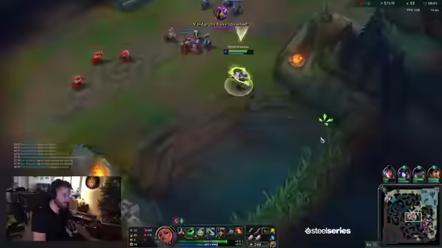 00:47:26Ein neues Spiel beginnt mit dem Ziel, das vorherige zu vergessen. Es wird gegen Warwick toplane gespielt. Ein früher First Blood wird erzielt, was positiv aufgenommen wird. Es wird die Spielweise des Gegners analysiert und überlegt, wie man ihn am besten besiegen kann. Es wird überlegt, ob man den Gegner mit Barrier baiten soll. Es wird festgestellt, dass der Gegner Anti-Heal benötigt. Die Lane-Situation wird als viel besser als im vorherigen Spiel bewertet. Es wird die Spielweise des Warwick kritisiert und überlegt, wie man ihn am besten kontert. Es wird die Bedeutung von Sustained Damage gegen Warwick betont. Es wird sich über die Teammitglieder informiert und deren Spielweise analysiert.