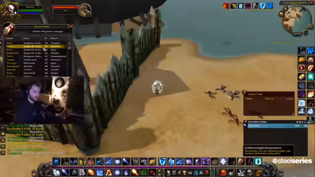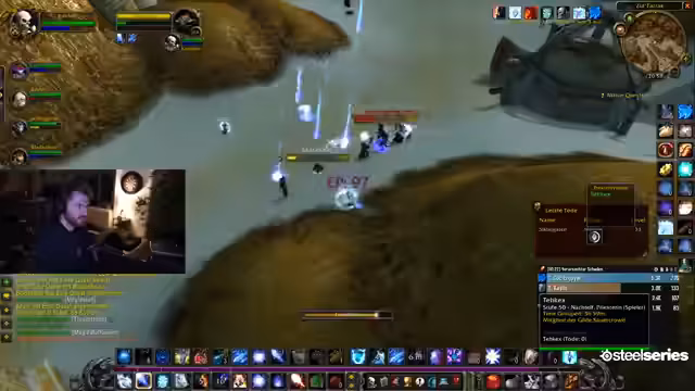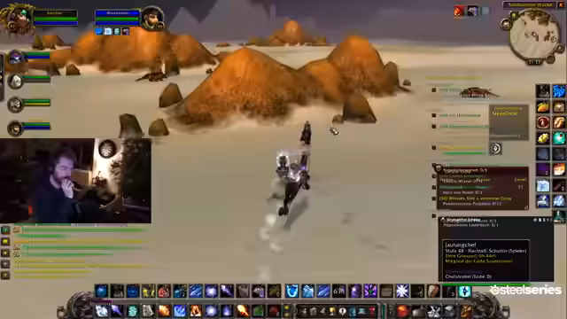 01:48:03Es kommt zu technischem Chaos beim Aufstellen von Portalen nach Stormwind. Der Streamer und andere Gruppenmitglieder nutzen verschiedene Ruhesteine und Flugwege, was zu Verwirrung und verpassten Verbindungen führt. Trotz der unkoordinierten Anreise will die Gruppe nicht aufhalten und sich stattdessen schnell auf den Weg nach Desolace machen, um den Dungeon-Run nicht zu verzögern.