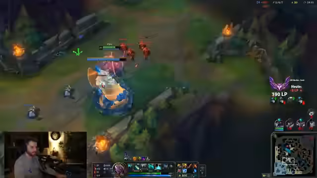 00:54:19Während des Spiels kommt es zu mehreren technischen Problemen mit dem League of Legends Client, der mehrmals abstürzt oder nicht startet. Dies führt zu längeren Ladezeiten und Unterbrechungen im Spielverlauf. Der Streamer zeigt seine Frustration über die instabilität des Clients, bleibt aber geduldig. Trotz dieser Probleme zeigt er eine beeindruckende Performance im Spiel, besonders mit seinem Tank-Pike Build, der ihm eine gute Position in der verbleibenden Zeit sichert. Er bleibt motiviert und fokussiert auf das Ziel, das Spiel zu gewinnen.