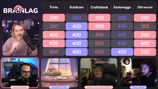 04:14:44In der finalen Quizphase diskutieren die Teilnehmer taktische Joker-Nutzung und Punktestände. Metashi dominiert mit WoW-spezifischem Wissen, während Craft Attack-Fragen zunehmend schwerer werden. Ein Ausblick auf kommende Events wird gegeben, insbesondere zur Planung von Minecraft-WoW-Nachbauten für zukünftige Streams.