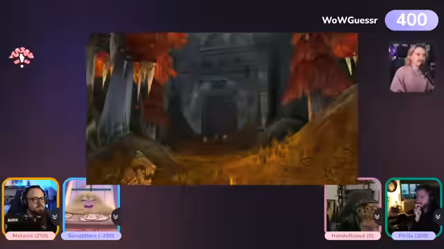 03:26:42Eine Quizfrage zum teuersten bei Händlern erhältlichen Gegenstand führt zu Diskussionen über Epic Mounts (1000 Gold). Sun Gliders und Hand of Blood erhalten Bonuspunkte. Beim Geoguesser-Segment wird der versteckte Eingang zu Mount Hyjal erraten, der in Classic nicht zugänglich war. Metashi liegt im Punktestand vorn, während Strategien zur weiteren Punkteverteilung besprochen werden.
