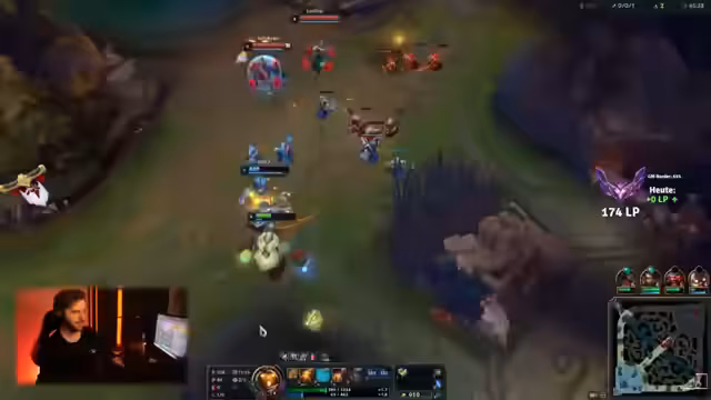 03:18:30Der Fokus verschiebt sich zu einem League of Legends-Spiel, bei dem der Streamer mit Charakteren wie Draven und Bart spielt. Während des Spiels interagiert er intensiv mit seinem Chat, erwähnt Viewernamen wie Puzzle, Willy und Marlon, und reagiert auf Emotes und Kommentare. Es gibt auch eine kurze Auseinandersetzung über die Gameplay-Entscheidungen eines Mitspielers, was zu einem lebhaften Austausch im Chat führt.