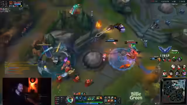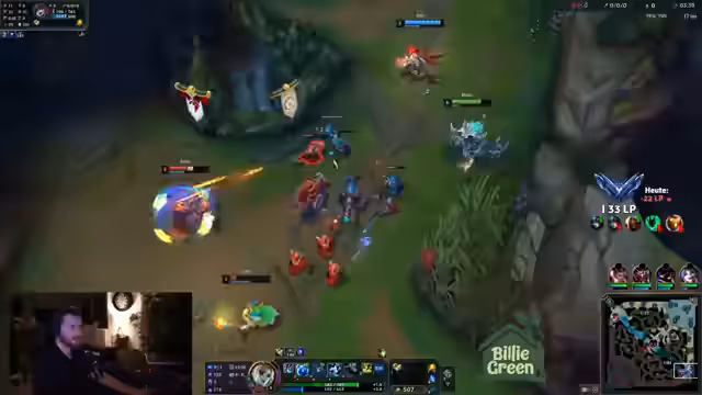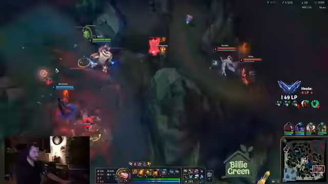00:00:47Der Stream beginnt mit dem Streamer, der über Bauchschmerzen klagt und über sein gefundenes Essen berichtet. Er startet ein neues Ranked-Game in der Challenger-Elo und wählt Varus für die Top-Lane. Das Matchup gegen die gegnerische Top-Lane, bestehend aus Jinx und Lulu, wird als verrückt und fordernd beschrieben. Der Streamer ist motiviert und möchte eine Gewinnserie aufbauen, auch wenn er anfangs mit Magenproblemen zu kämpfen hat. Die Anfangsphase des Spiels ist geprägt von aggressiven Level-1-Kämpfen und einer allgemeinen intensiven Stimmung in der Lobby.