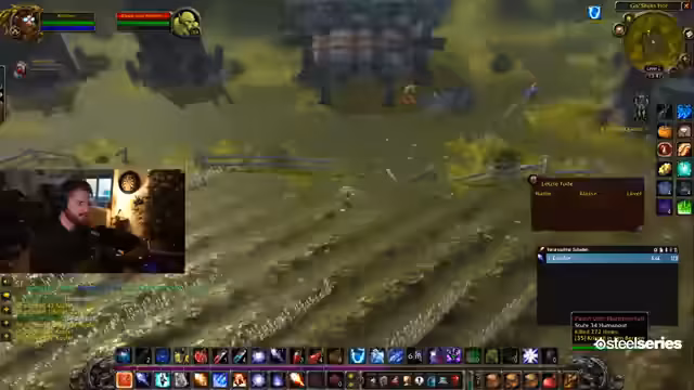 00:38:09Während des Gnomeregan-Runs berichtet der Streamer von unerwarteten Todesfällen durch Ambuschen (z.B. zwei Level 34-Mobs beim Verlassen der Taverne) und teilt Loot wie Magiestoff und Seidenstoff. Es gibt Diskussionen über Quest-Items (z.B. Fiole vs. Flachmann) und Strategien für Pulls. Der Streamer erwähnt seinen Welt-Buff und Nutzer mit Layer-Anfragen.