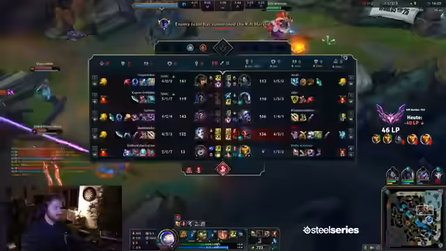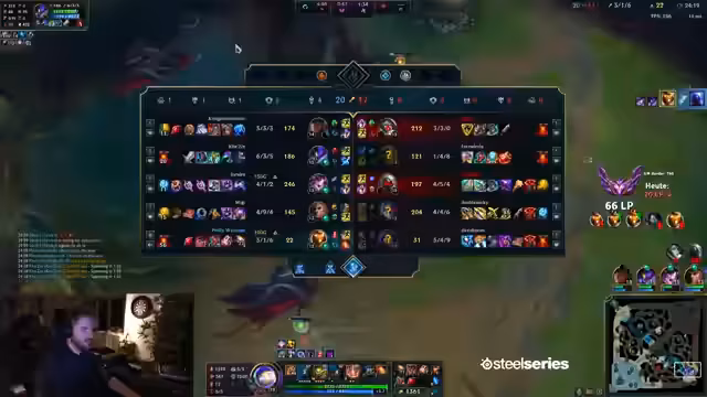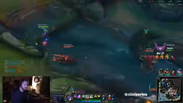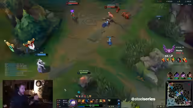 01:53:44Ein Zuschauer fragt, ob der Streamer bereit wäre, in einem 10.000 Euro Turnier gegen bekannte Spieler wie Visi, Chachi und Tokimo zu supporten, was der Streamer bejaht und als gute Investition betrachtet. Im aktuellen Spielverlauf werden kritische Momente analysiert, wie ein verpasster Bard-Ultimate, der das Team einen Vorteil hätte verschaffen können. Die Spieler diskutieren über die Effektivität von Champions wie Kindred und Elise und versuchen, strategische Entscheidungen zu treffen, um das Spiel zu drehen. Der Streamer äußert seine Frustration über bestimmte Spielzüge und die Schwierigkeit, gegen starke Gegner zu bestehen.