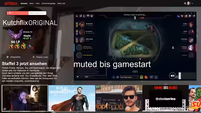 00:00:45Vor dem Spielbeginn diskutiert das Team die Bann-Phase, wobei Shogart und Irea als erste Bans festgelegt werden, während der dritte Ban noch offen ist. Es wird erwähnt, dass das Team in Division 3 ist, frisch aus Division 2 aufgestiegen, und sich mit vier Diamond-Spielern für die Prime League qualifiziert hat. Ein Spieler merkt an, dass er bald einen Grandmaster-Rahmen haben wird. Während dieser Vorbereitungsphase treten technische Probleme auf, da ein Spieler berichtet, dass sein Spiel nicht startet, was zu einer kurzen Pause führt. Die Spieler tauschen sich über ihre Turniererfahrungen aus, insbesondere über das Kroko-Turnier, und besprechen die Auswirkungen von Item-Beschränkungen in bestimmten Spielmodi. Trotz der anfänglichen Schwierigkeiten und der Diskussionen über die kommenden Spiele, darunter ein wichtiges Spiel am Sonntag, das aufgrund von Urlaubs- und Turnierplänen verschoben werden muss, bleibt der Fokus auf dem bevorstehenden Match.