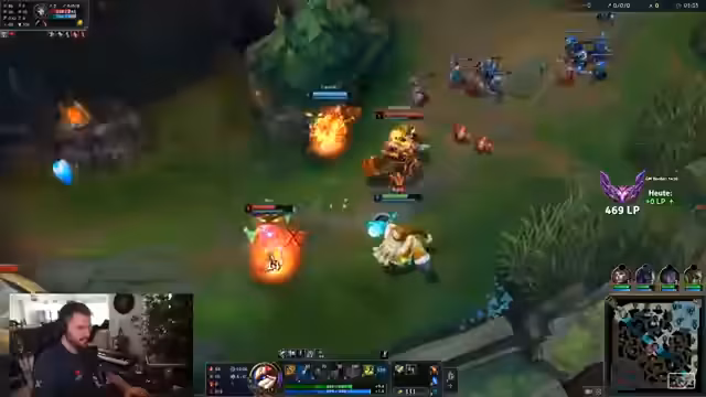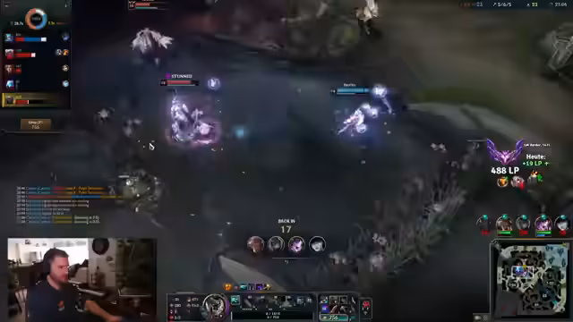 00:02:46Der Stream startet mit einer Beschwerde über Windows Update, das die Sound-Einstellungen durcheinanderbringt. Der Streamer beginnt sein SoloQ-Grind und hat frühzeitig technische Probleme mit dem Sound. Im ersten Spiel spielt er einen Blitzcrank, der in eine schwierige Situation gerät, als sein Gegner Jhin den Blue Buff stiehlt. Während des Spiels denkt der Streamer über die psychologische Wirkung von Sport nach, warum man sich danach gut fühlt, aber trotzdem nicht hingehen möchte. Es kommt zu einem unglücklichen Todesfall und der Streamer ärgert sich über den Verlust von Kills und Ressourcen.