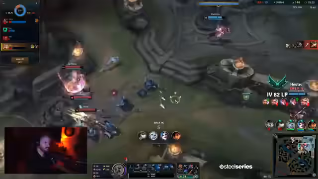 00:09:31Der Stream konzentriert sich hauptsächlich auf das Spielen von League of Legends, speziell mit dem Champion Kiana auf der Mid-Lane. Der Streamer äußert seine Frustration über das aktuelle Spielumfeld, insbesondere die Top-Lane, wo er häufig Gegner mit sehr positiven (8-0) oder sehr negativen (0-8) K/D-Verhältnissen sieht und die Spiele dadurch als unspielbar empfindet. Er analysiert seine eigenen Missplays und sucht nach Wegen, sich zu verbessern, stößt aber oft auf die Limitationen seiner ELO.