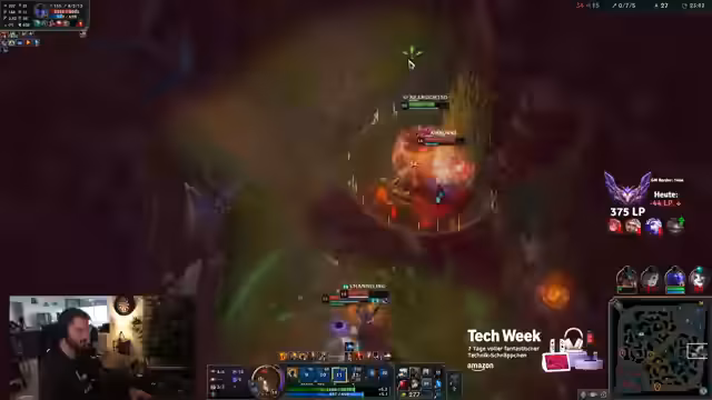 02:43:51Der Streamer zeigt live Gameplay von League of Legends und reagiert auf verschiedene Situationen im Spiel. Er kritisiert seine eigene Leistung und die seines Teams, diskutiert Champion-Auswahl und strategische Entscheidungen. Er äußert sich besonders über Vladimir als Champion und vergleicht dessen Spielweise mit anderen Champions, was zu einer humorvollen und teilweise frustrierenden Darstellung des Gameplays führt.