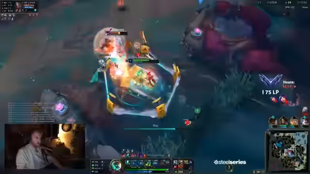 00:00:10Der Stream beginnt mit einem traditionsreichen Duo Queue Abenteuer. Es wird über einen angeblich legendären Sol-Clip gesprochen, der Peak-Gameplay zeigt. Es werden mehrere League of Legends Spiele gespielt, wobei eines besonders erwähnenswert ist: das Team erleidet einen early setback, als die gegnerische Yasuo mit Cleanse die early Lane dominiert. Dennoch bleibt das Team optimistisch und plant, aus der defensiven Position herauszuspielen und das Spiel zu kontrollieren.