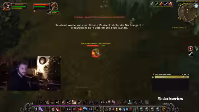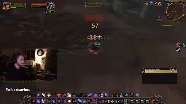 07:12:44Ein charmanter Moment des Scheiterns tritt ein, als derStreamer vermerkt, dass Wieland gestorben ist. Er erreicht Level 57 und der Charakter 'Ingolf Eier' stieß zur Gilde hinzu. Die angespannte Situation wird durch die Diskussion eines komplexen Bossfights in LBRS aufgelockert, bei dem er denkt, dass Mobs zu früh weglaufen. Nachfolgend spricht er von positiven Erfahrungen, wie dem erfolgreichen Hügel-Bossfight und dem begeisterten Reaktion des Chats auf die gute Performance der Gruppe.