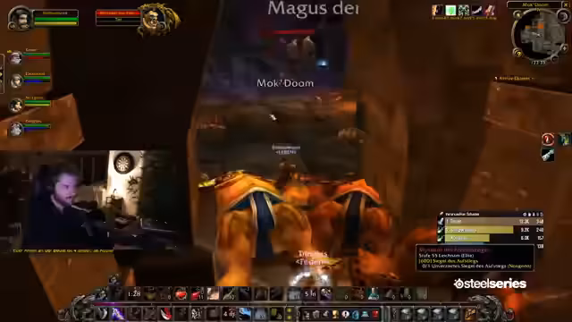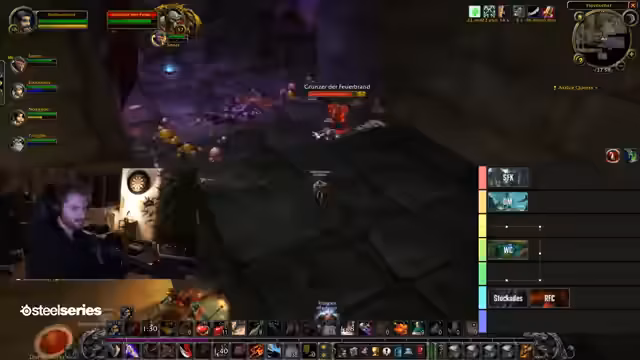 04:27:03Intensive Kämpfe in LBRS mit Fokus auf Heilungsproblematiken. Diskussion über optimales Heilverhalten: Pre-Shields vor Boss-Pulls, Aggro-Vermeidung und Mana-Management. Fast-Tod-Situationen durch unkoordinierte Heilung. Verwirrung über Dungeon-IDs und Boss-Kill-Zählungen. Kämpfe gegen schwierige Eliten und Bosse wie den 'Totenkopf' führen zu spannenden Momenten. Der Spieler erreicht Level 57,5.