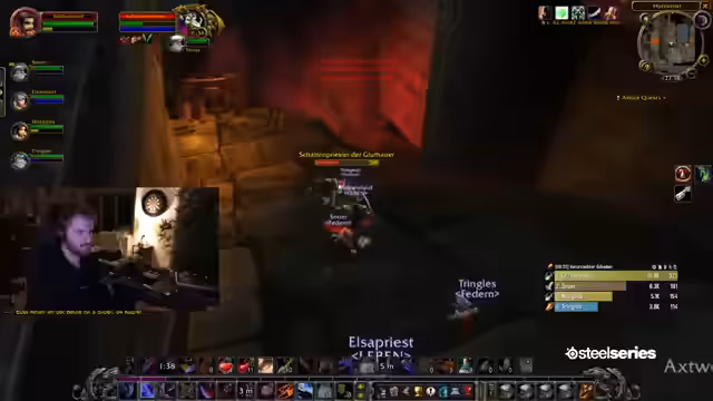 10:19:39Der Streamer befindet sich im Dungeon BRD und ist auf der Suche nach spezifischem Loot. Er teilt seine Begeisterung für bestimmte Gegenstände wie den 'Doppelteufelsaurier' und erwähnt, dass er als Melee-Priester nur mit einem Knüppel kämpft, was ihm sowohl Spaß als auch Mana spart. Er analysiert auch sein eigenes Equipment im Vergleich zu anderen Spielern und zeigt sich motiviert, für das Event bestens ausgerüstet zu sein.